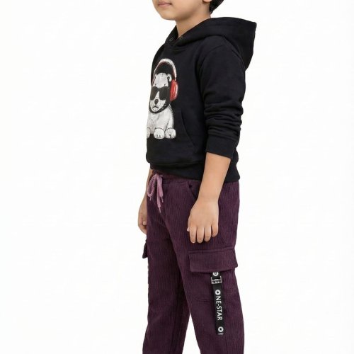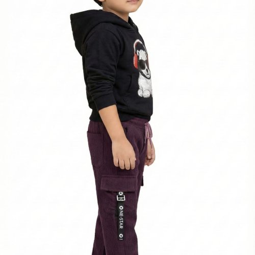 Black and Purple Trendy Boys Printed Hoodie Co-Ord Set